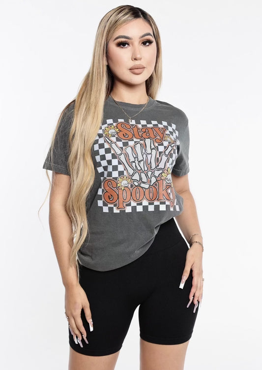 Stay Spooky Checkered Retro Oversized Shirt- Pepper