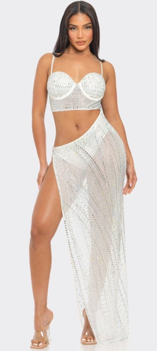 Serena Rhinestone Skirt Set- White